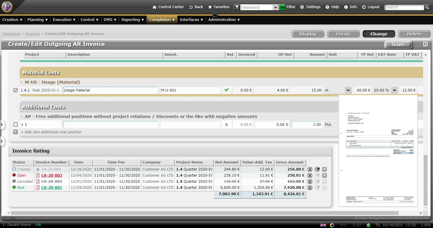 fx-project generates invoices as a so-called Factur-X/ZUGFeRD invoice (Factur-X is the international term; ZUGFeRD is the German term - Both terms can be used synonymously).