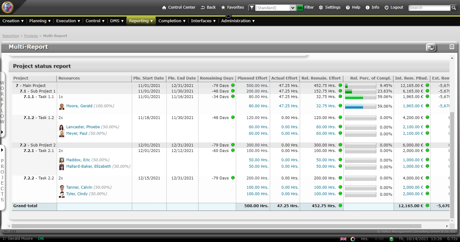 As a successful project manager, you always know the current status of your project, the project participants and costs.