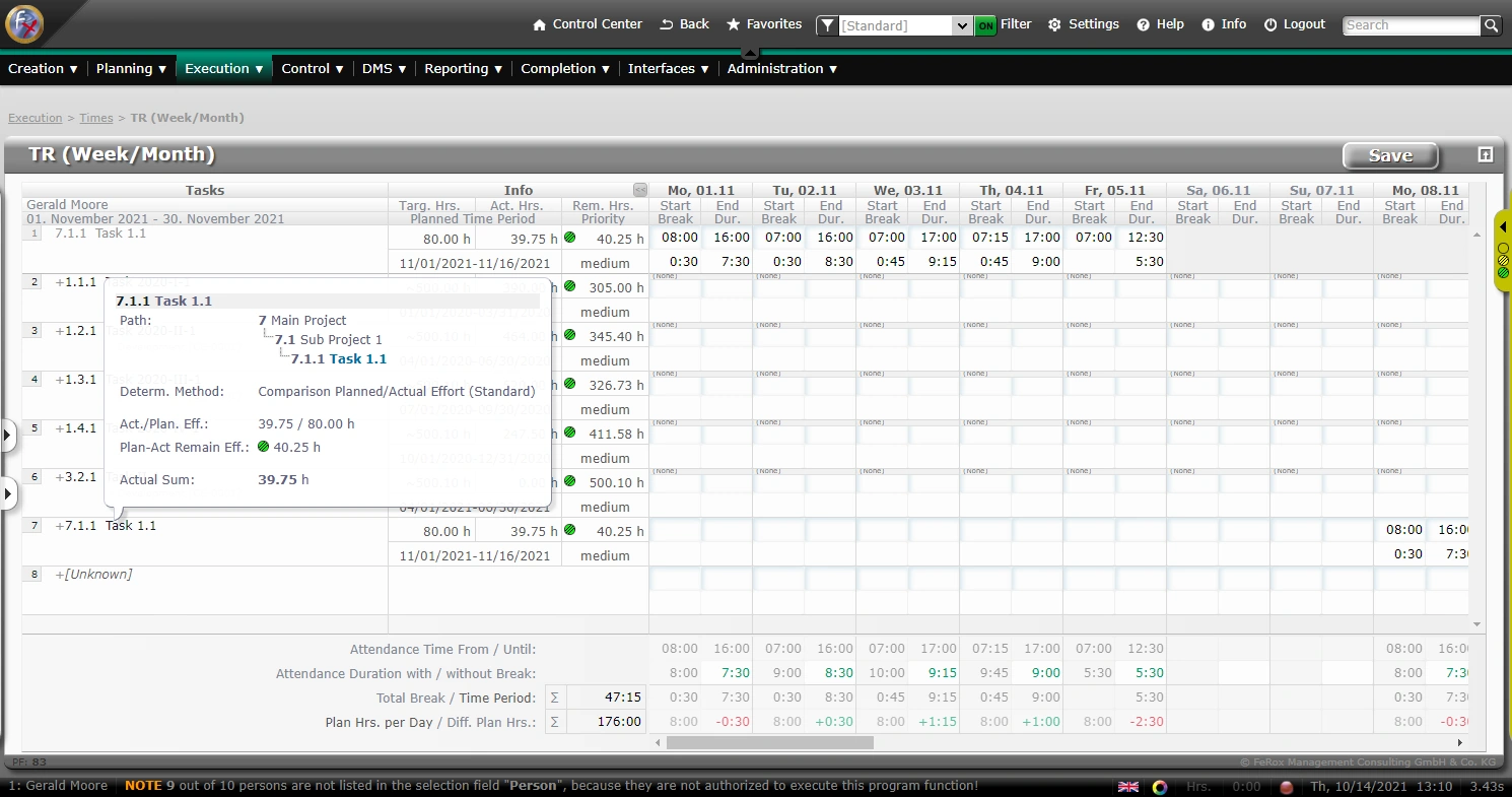 Task-based time recording via browser or smartphone is an important tool and provides the project manager with the current status and reduces the administrative effort!
